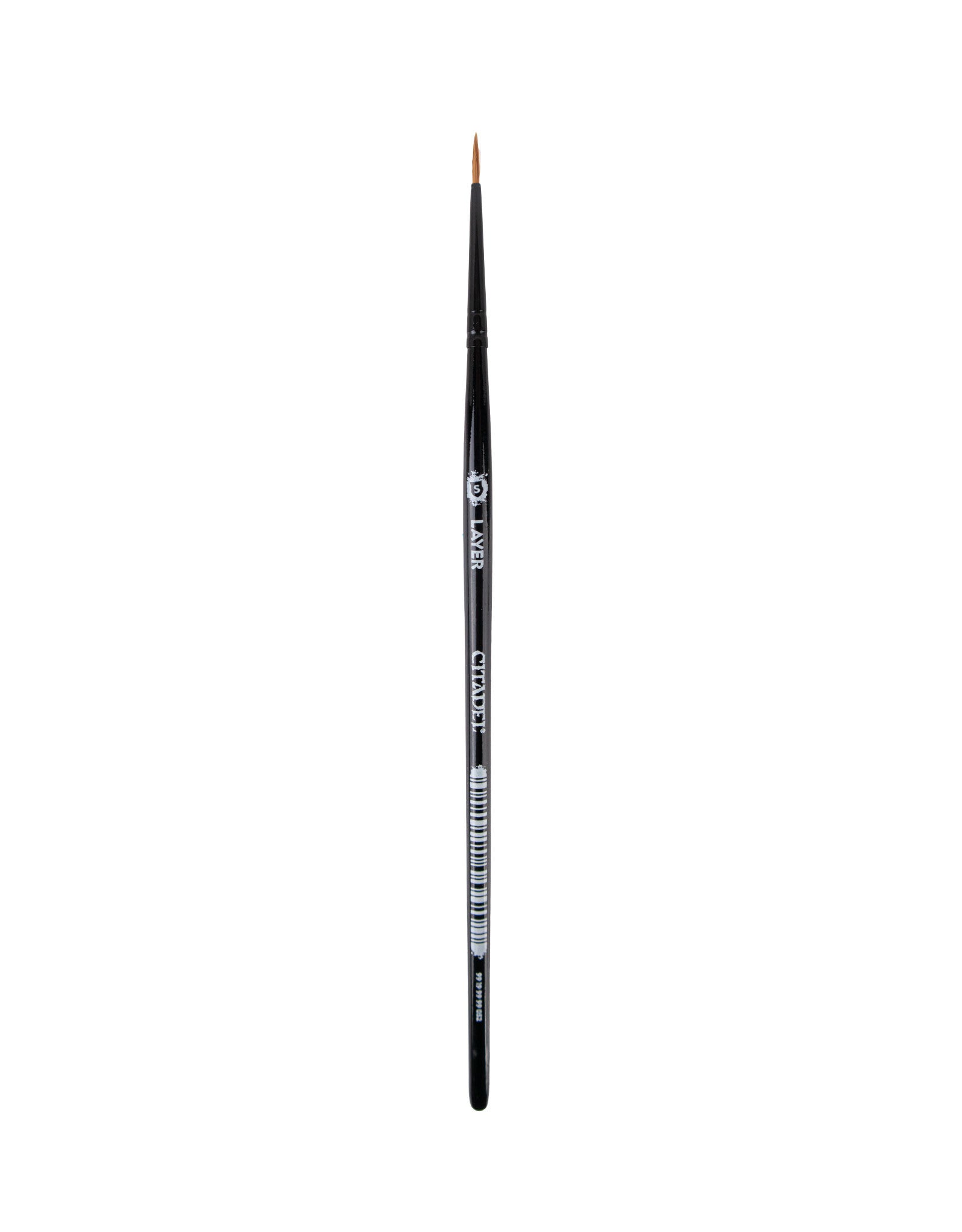 This small brush (S Layer) - perfect for layering - is hand made, with pure sable bristles in a fine point meaning exceptional control - sometimes the tiniest details make a huge difference, and this brush has been designed to help you nail the feeling of a great miniature painted well.