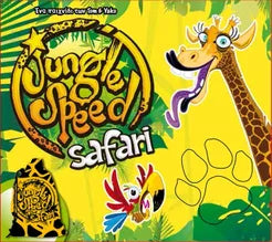 Jungle Speed Safari is a standalone game that's part of the Jungle Speed family. The core gameplay is the same, with players turning over cards from their personal stacks one by one in front of themselves and reacting when certain cards or combinations of cards appear, but Jungle Speed Safari features five wooden totems to grab instead of one, and you interact with them in different ways, with every card that's revealed possibly triggering an action. If a player reveals a hungry animal card, for example, all players must race to grab the appropriate totem to satisfy the animal. Whoever grabs that totem adds the hungry animal card to his score pile.