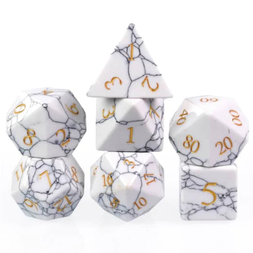 These unique stone dice will be the gem of your collection! Each complete RPG set comes carefully packed in a leatherette storage case, ready to accompany you on your search for more precious loot. Our beautiful Foam Brain Games Stone Dice are sure to be the envy of your adventuring party!