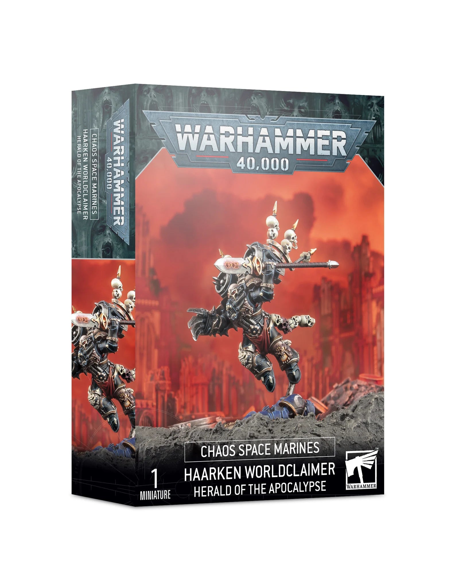 Haarken Worldclaimer takes a heinous joy in his role as the mouthpiece of Abaddon, for it is he who proclaims the death of worlds. He does so not with some quotidian threat or hollow boast, but by driving his weapon, the Daemon-touched Helspear deep into the heart of citizen and soldier alike. He is a dark omen given form, and the otherworldly destruction he heralds is the coming of the Warmaster himself. This box contains: