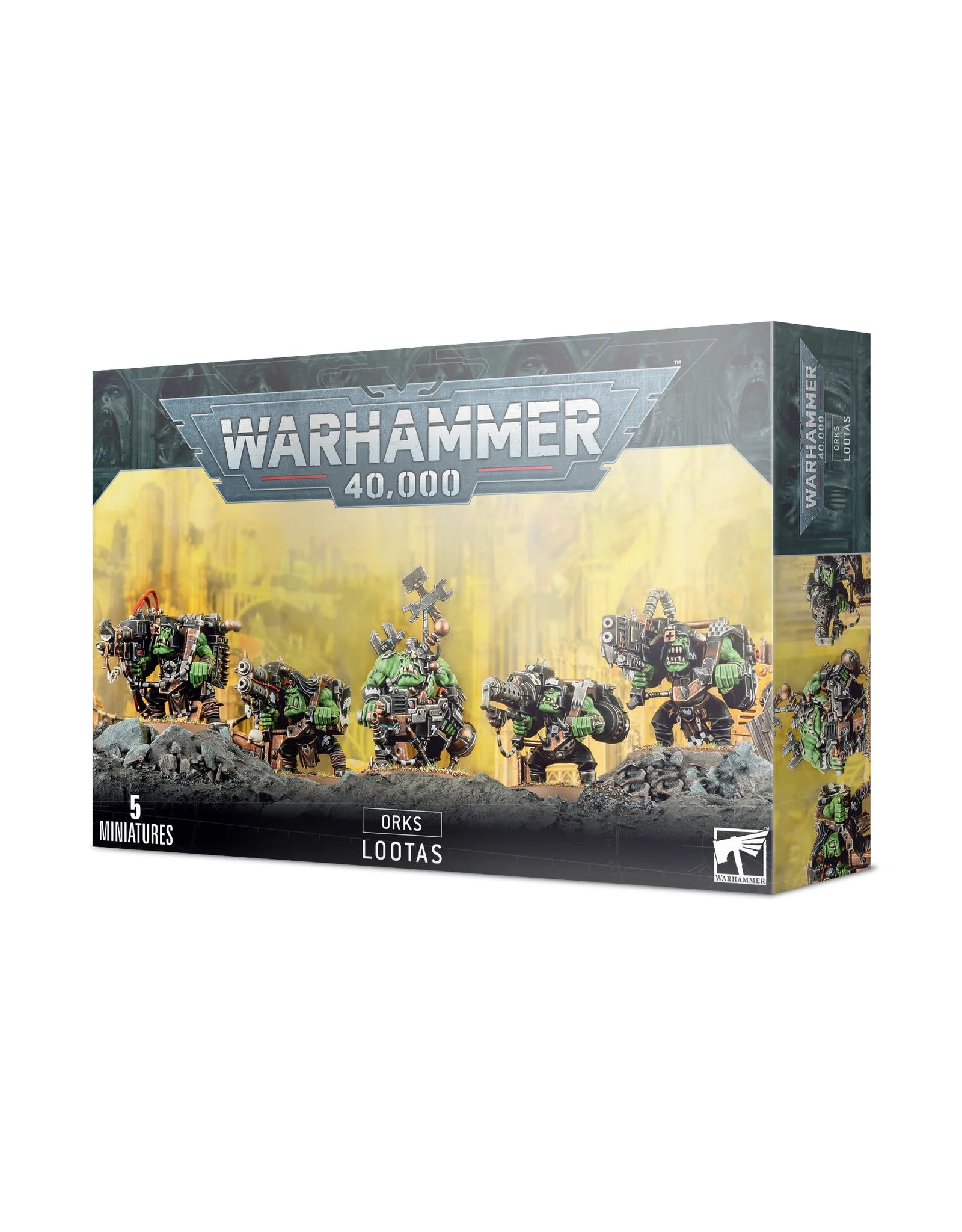 This multipart plastic boxed set contains enough components to make 5 models: either 4 Lootas or 4 Burna Boyz, as well as an Ork Mek armed with a kustom mega-blasta. Models supplied with 32 mm round bases.